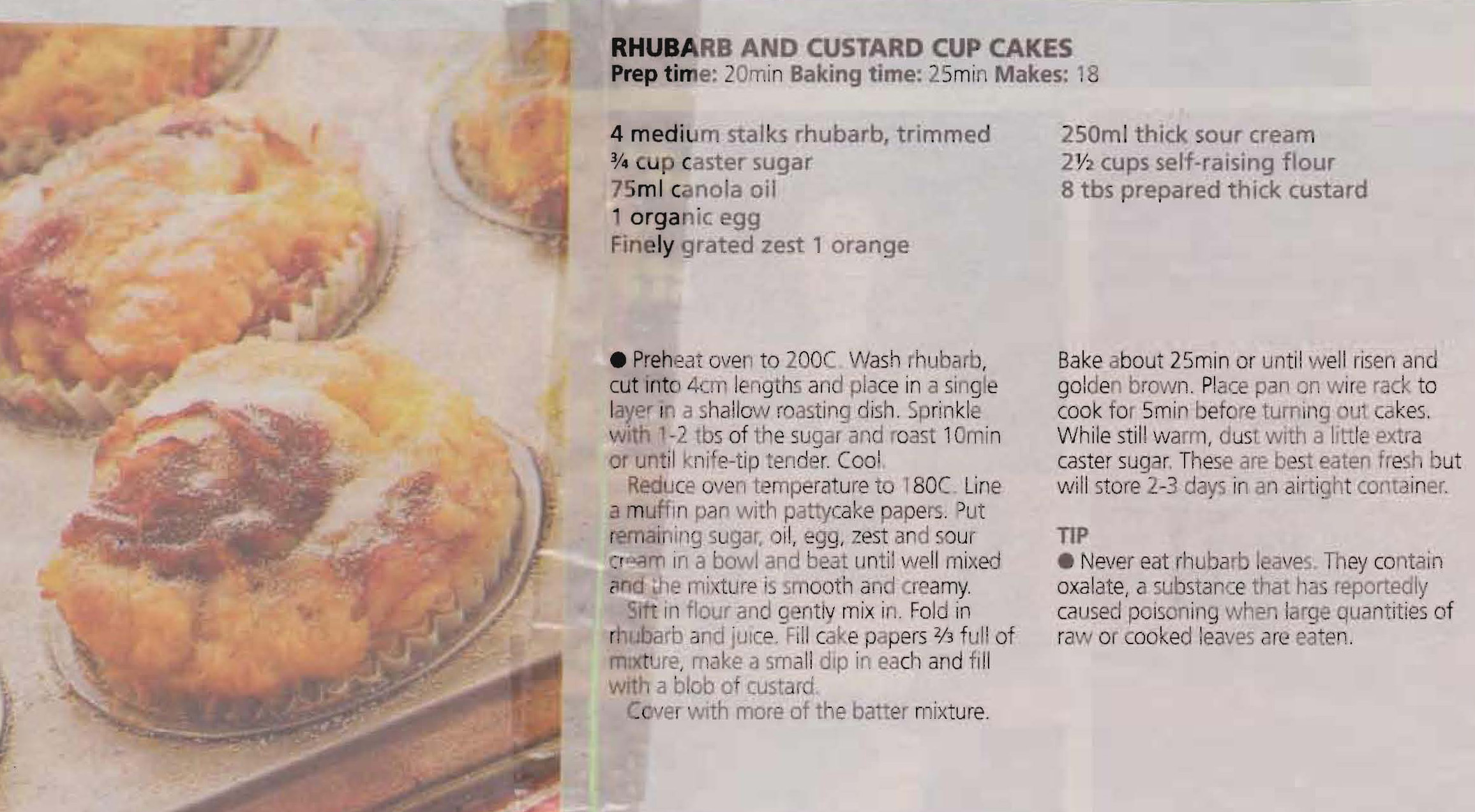 When I was growing up the one thing that that Dad always had growing in the garden was rhubarb. Its giant green leaves and red stalks filled one corner of his veggie patch and never seemed to die off. Luckily Dad liked eating it so Mum stewed it up with some sugar and served it with custard for dessert – quite often. I don’t know about my brothers, but it was never one of my favourites and I’ve been greatly surprised to see that it has come back into fashion – who would have thought? I think this recipe at least would be sweet enough to counteract some of the tartness I didn’t like.