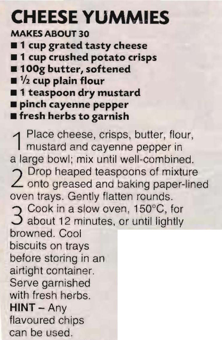 By the look of this cutting Mum cut it out of a magazine quite a while ago. I don’t remember her making them, but they look great and are something a little bit different to serve with drinks. I usually make little cheese biscuits or pita bread crisps, but I think these look good and I’m going to try them next time.