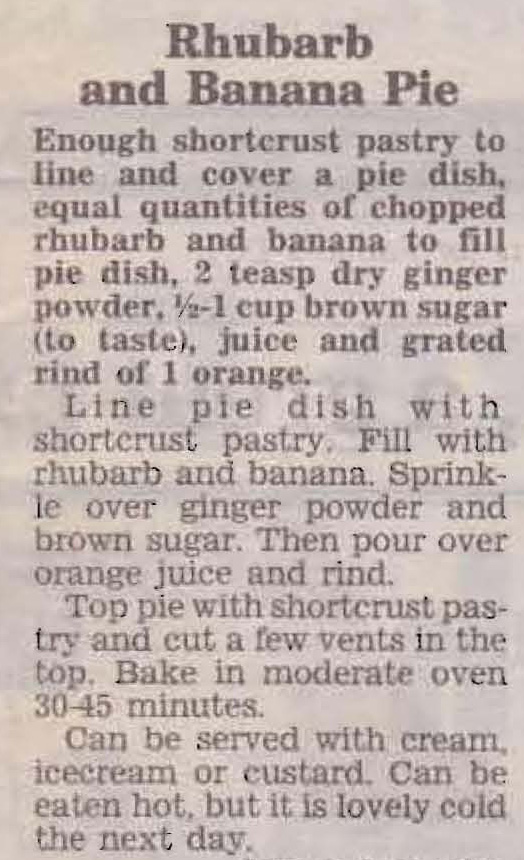 The combination of rhubarb, banana and orange seems unusual to me in this recipe, but I think the banana and orange would take some of the tartness out of the rhubarb, which could be good. I haven’t cooked it as my husband hates rhubarb, but you might like to try it out.