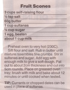 FRUIT SCONES Posted on June 2, 2017 by bebsrecipes Recipe two in Scone Week is one of my favourites – Fruit Scones. I’m absolutely hopeless at making them, but always enjoyed Mum’s. Share this: Click to share on X (Opens in new window) X Click to share on Facebook (Opens in new window) Facebook Like Loading... Related