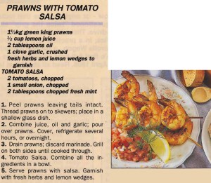 I’m a great believer in having as much cooking as possible done before the visitors arrive. This recipe was printed as part of ‘Do-ahead Dinner Party” menu and is a great idea. An easy to make overnight marinade, then a quick grill while the visitors are having a drink ………and ……… entree is served.
