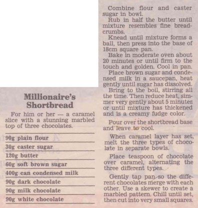 MILLIONAIRE’S SHORTBREAD Posted on July 19, 2018 by bebsrecipes This is really just a baked caramel slice with a chocolate topping, but it’s a great name for it, isn’t it? Share this: Click to share on X (Opens in new window) X Click to share on Facebook (Opens in new window) Facebook Like Loading... Related