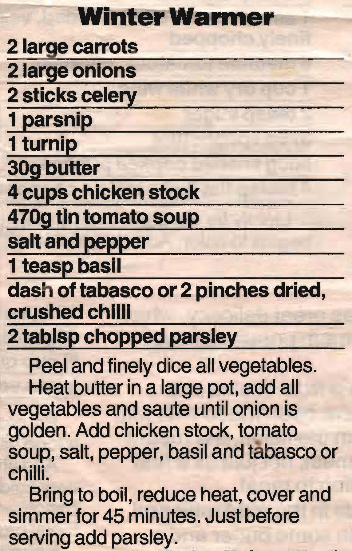 A polar blast has ripped through the southern states of Australia this weekend, so it was an easy decision to post another soup recipe. There’s nothing overly fancy about this one, it’s just a good tomato and vegetable soup – easy to make and great for cold weekends.