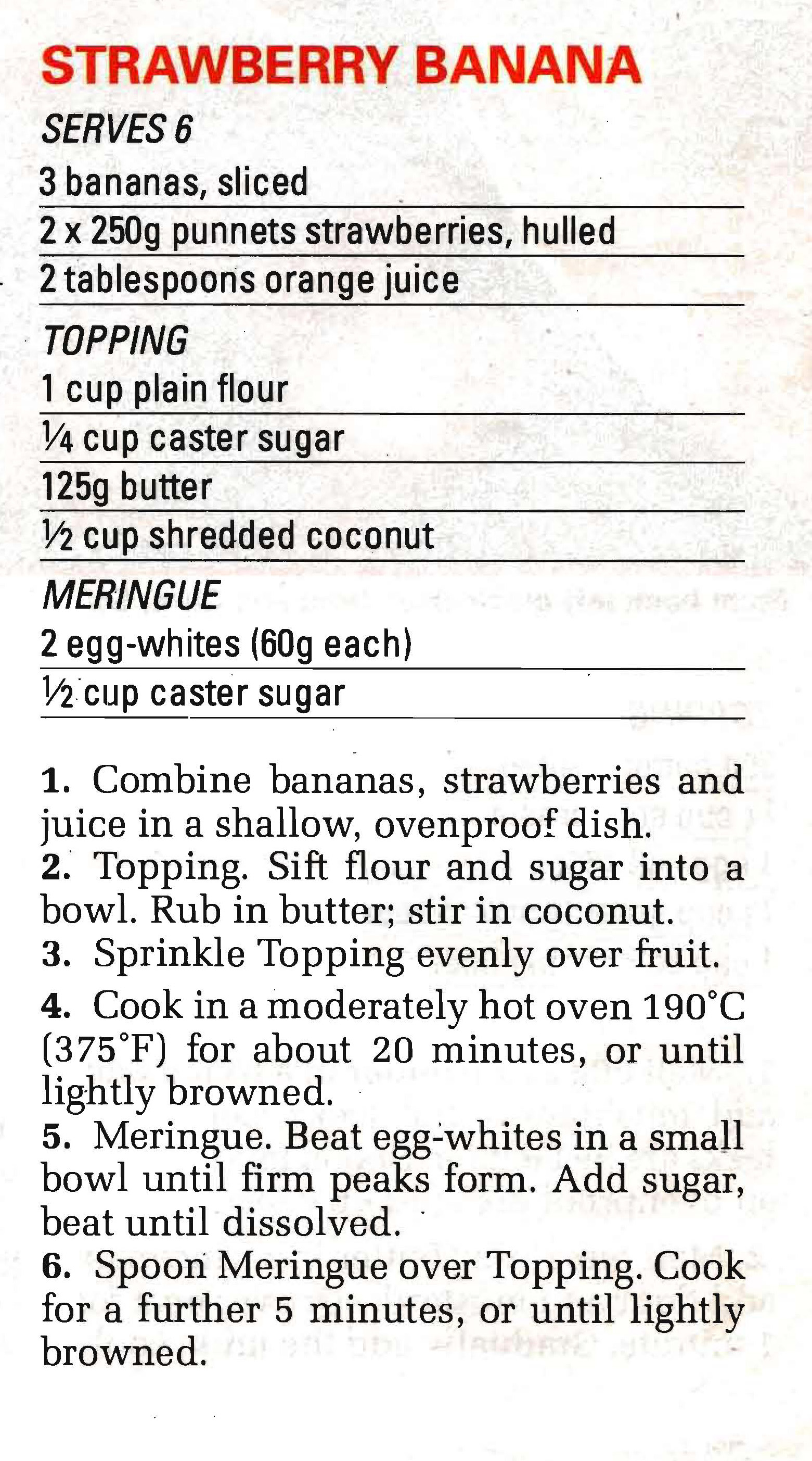 It’s a bit unusual to have a fruit base, then a crumble layer (instead of the reverse) and then top it all with meringue as this dessert recipe does. I’m guessing the idea is that the crumble would absorb a little of the moisture from the fruit. Whether that’s the case or not, with these ingredients it should taste OK.