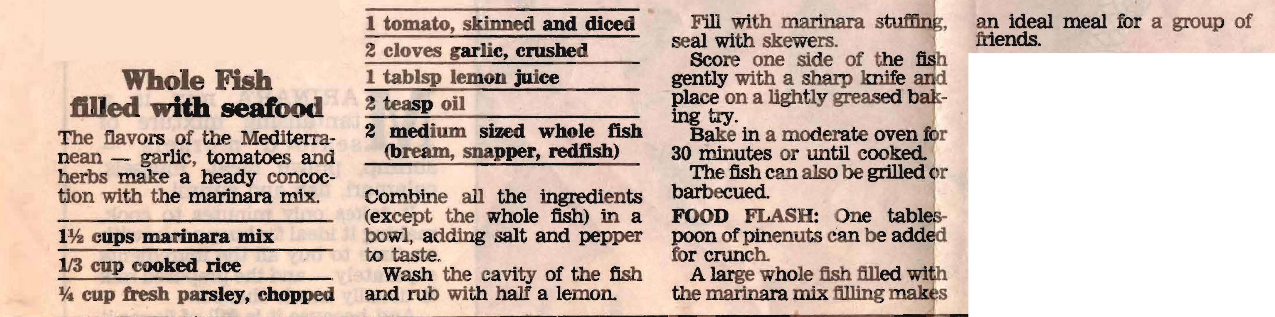 My father loved to fish. He and an old army buddy bought a boat and would go fishing on Port Phillip Bay and Western Port Bay. I have a lot of memories of waiting on the sand for them to come back, clean the boat and put it on the trailer so we could finally go home. The result was a steady supply of fresh fish. I just wish my mother had had this recipe though as I always found the plain fried fish Dad loved pretty boring. This marinara filling would have made it far more interesting.