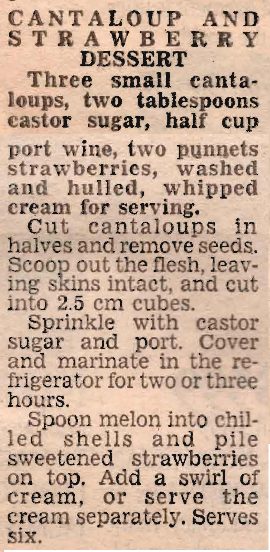 Cantaloup or Rockmelon, what do you call it? As a Victorian I call it cantaloup, but my husband a New South Welshman calls it rockmelon. It doesn’t matter what you call it, it tastes good and combined with strawberries and cream makes a cool and simple summer dessert.