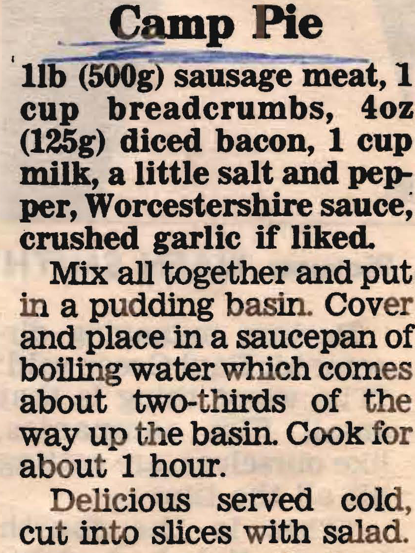 For Australians of my generation Camp Pie brings back memories of a tinned meat that was almost tastless and what taste there was wasn’t good. Our mothers would open the can, slice the meat and serve it with salad…….ughhh. Not a happy memory at all.