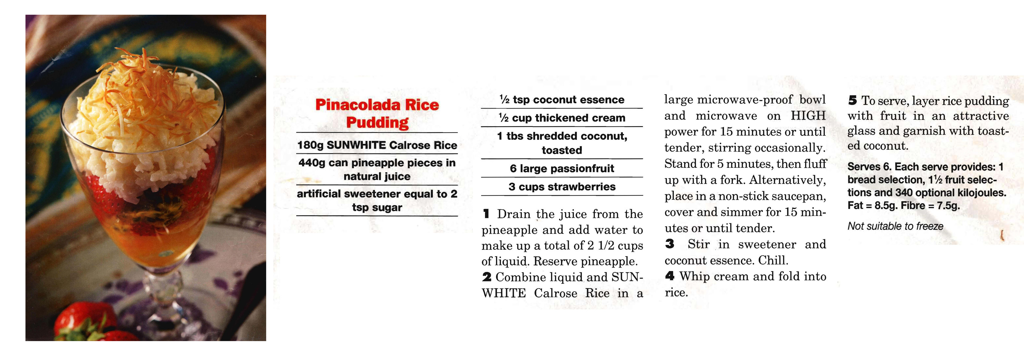 I always think of rice pudding as a winter dessert – a fairly bland one at that – but this is a much tastier summer version. Although I think I’d use fresh pineapple and fruit juice instead of canned pineapple, as that would give it a lovely fresh summer taste.