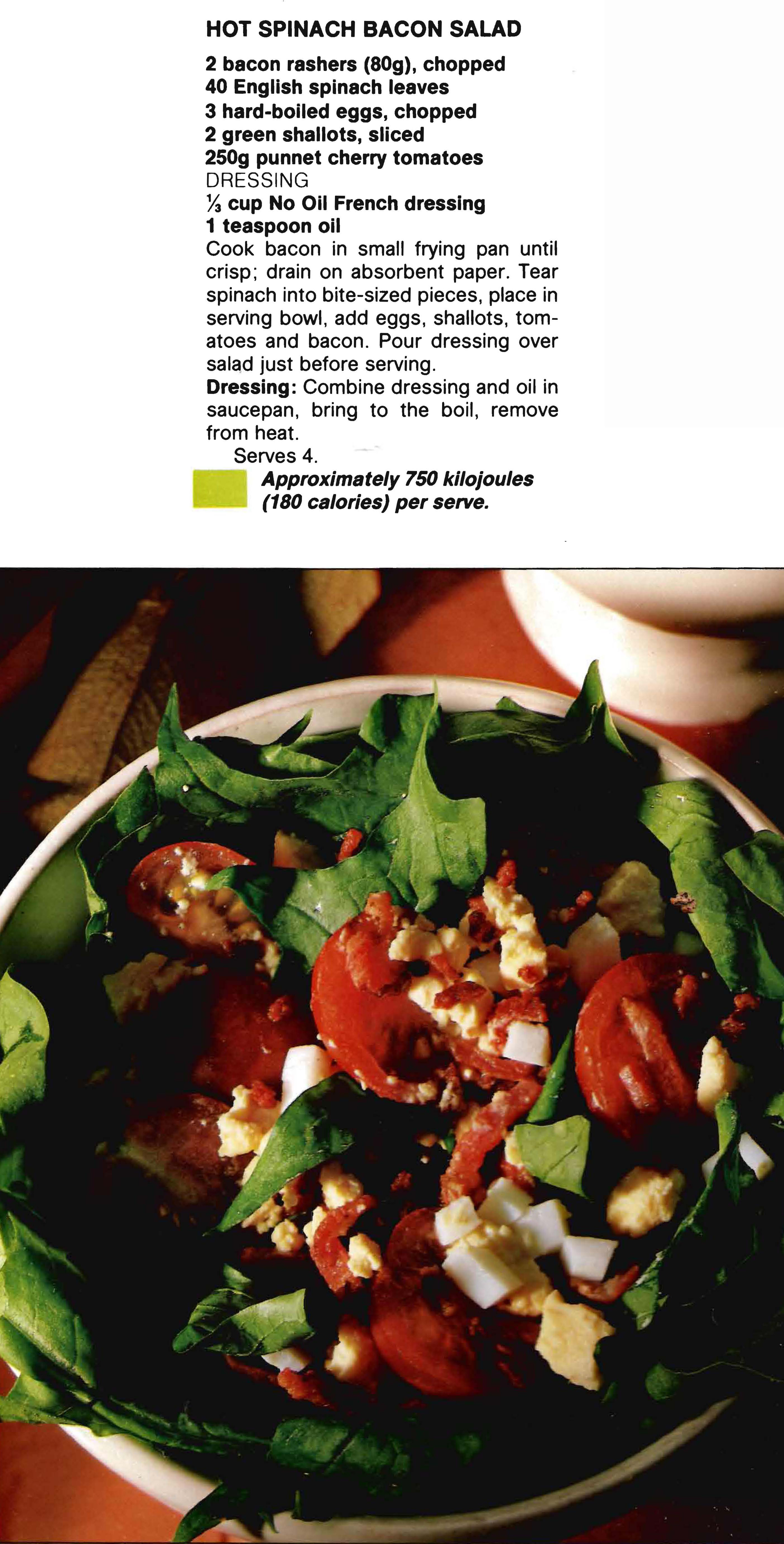HOT SPINACH BACON SALAD Posted on January 22, 2024 by bebsrecipes I think the combination of spinach, bacon and eggs together in a salad works really well. Of course, the hot part is simply by warming up the dressing, so it’s easy enough to turn it into a cold salad if you’d rather have it that way. Share this: Click to share on X (Opens in new window) X Click to share on Facebook (Opens in new window) Facebook Like Loading... Related