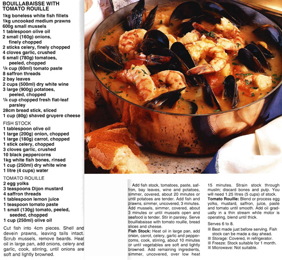 BOUILLABAISSE WITH TOMATO ROUILLE Posted on February 18, 2024 by bebsrecipes This definitely a dish for a special occasion. It’s costly to make and takes a bit of work, but the result is well worth it and the lucky diners will be very impressed. Share this: Click to share on X (Opens in new window) X Click to share on Facebook (Opens in new window) Facebook Like Loading... Related