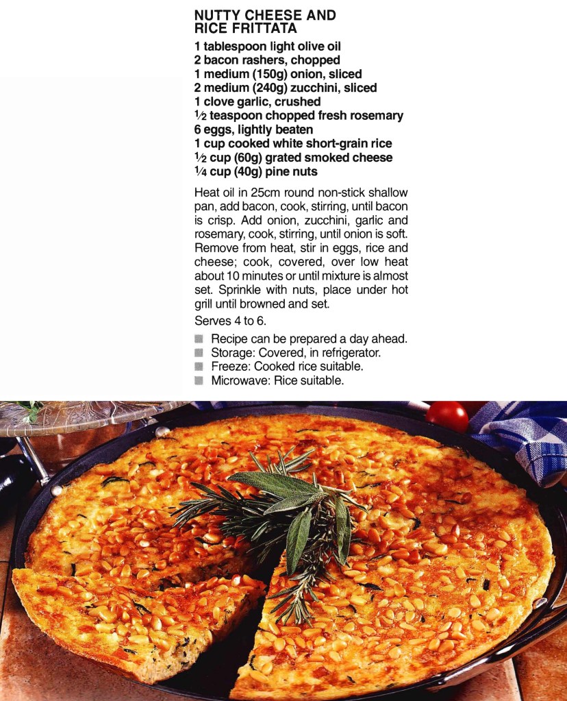I like the idea of this rice frittata because it’s a one pan dish. It would be a really good weekend meal, especially if you’ve got a bit of leftover cooked rice in the fridge. If you don’t have any a packet of microwave rice would work just as well.