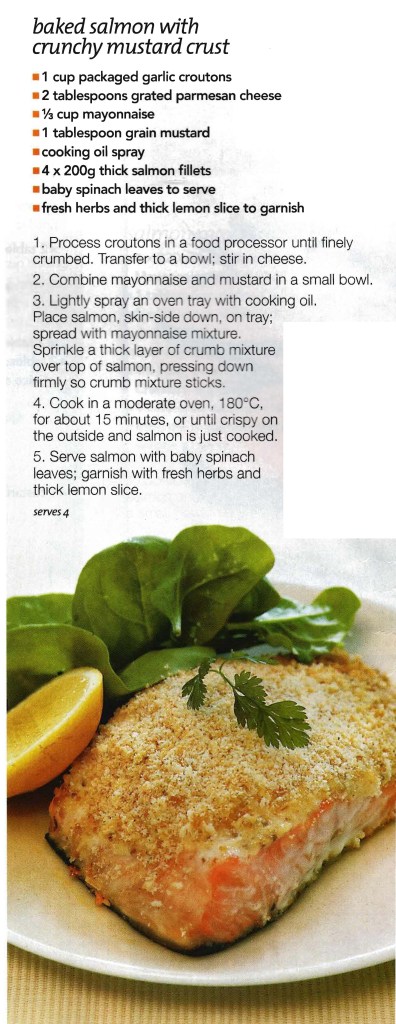 BAKED SALMON WITH CRUNCH MUSTARD CRUST Posted on March 1, 2026 by bebsrecipes It’s very easy to over cook salmon and it then ends up dry and unappetizing. So just 15 minutes in the oven with the mayonnaise and crumb topping helps keep the fish nice and moist. Share this: Share on X (Opens in new window) X Share on Facebook (Opens in new window) Facebook Like Loading... Related