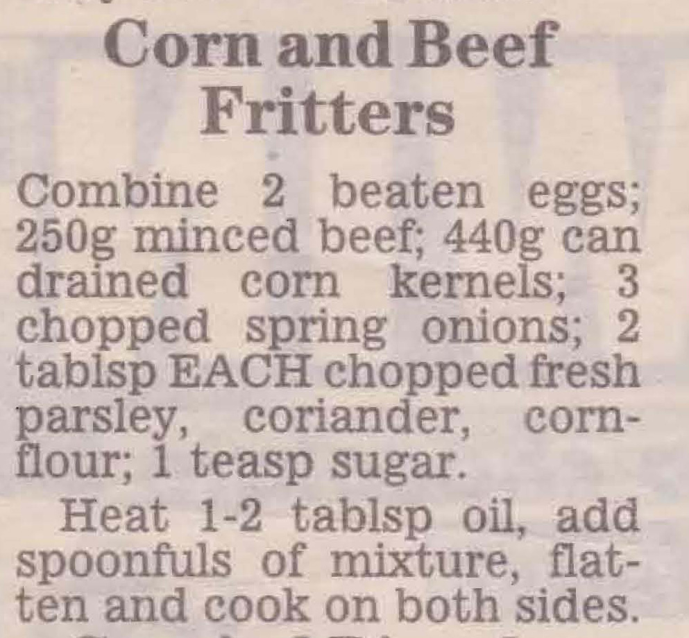 If you’re tired of plain old rissoles this recipe might work for you. Curry powder, green capsicum and garlic certainly add an extra bit of kick to the usual mince, onion and breadcrumb mix.