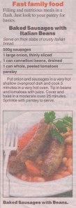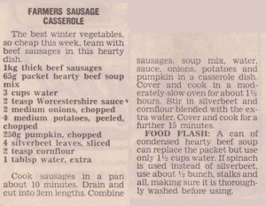 Mum’s friend Thel must have made this recipe using sausages, but from the handwritten title Mum must thought it was best with meatballs. I don’t think it matters which one you use, it tastes good with either.