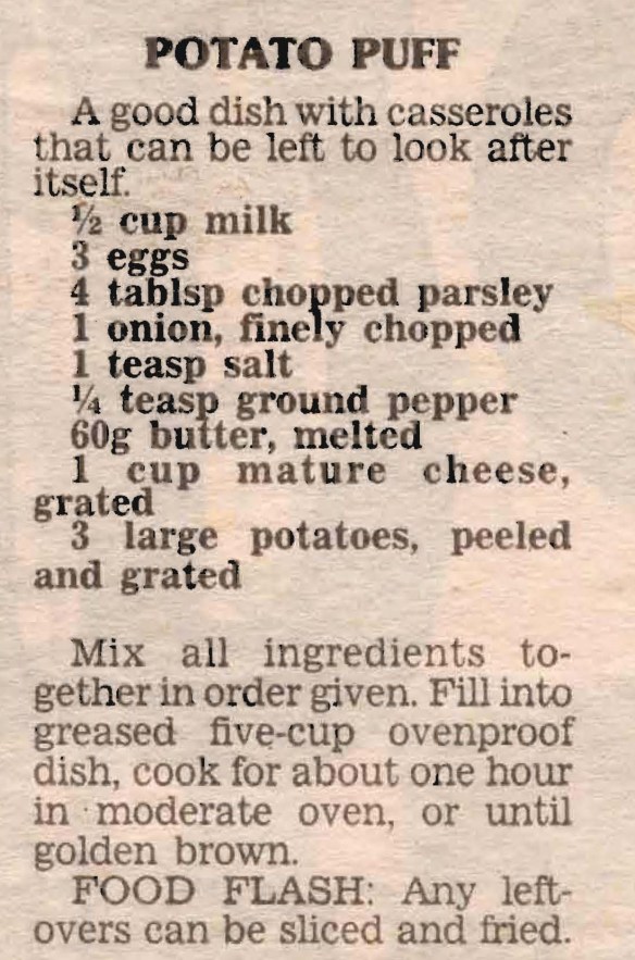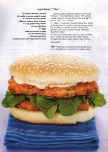 These make a nice change from a traditional beef hamburger and as the Woman’s Day hint says ‘fritters can be served in hamburger buns, as a vegetable accompaniment or with a salad’. I’d also suggest serving them between two pieces of toast.