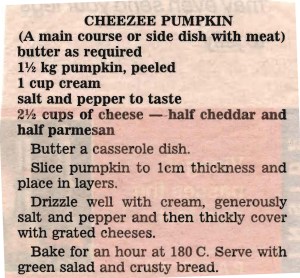 Not everyone likes pumpkin, but it’s actually a fairly versatile vegetable. Growing up most of our mothers only served it boiled or roasted. I now like it mashed or in curries and casseroles too. Haven’t tried this version, but I’m going to as I think the creamy cheezee sauce sounds great.