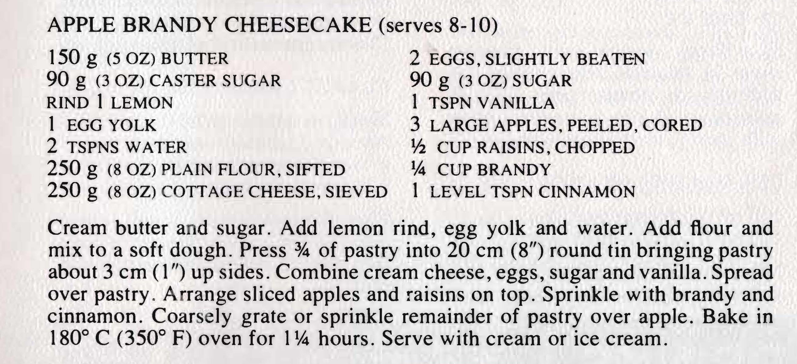 APPLE BRANDY CHEESECAKE