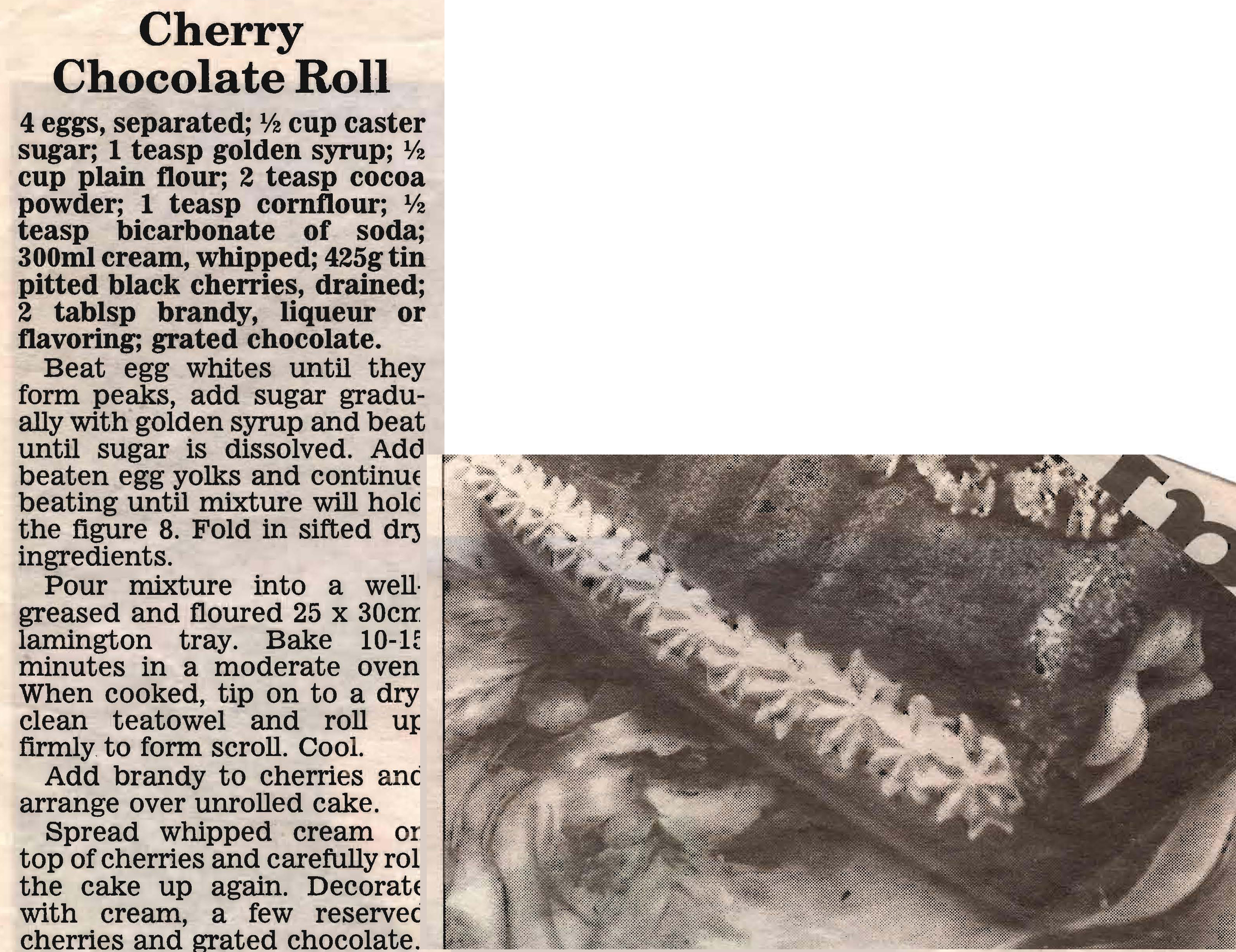 Swiss Chocolate Roll is probably the best known chocolate roll. This is just a bit of a step up from that with brandy soaked black cherries adding a bit of a kick. Possibly not one for the children……………