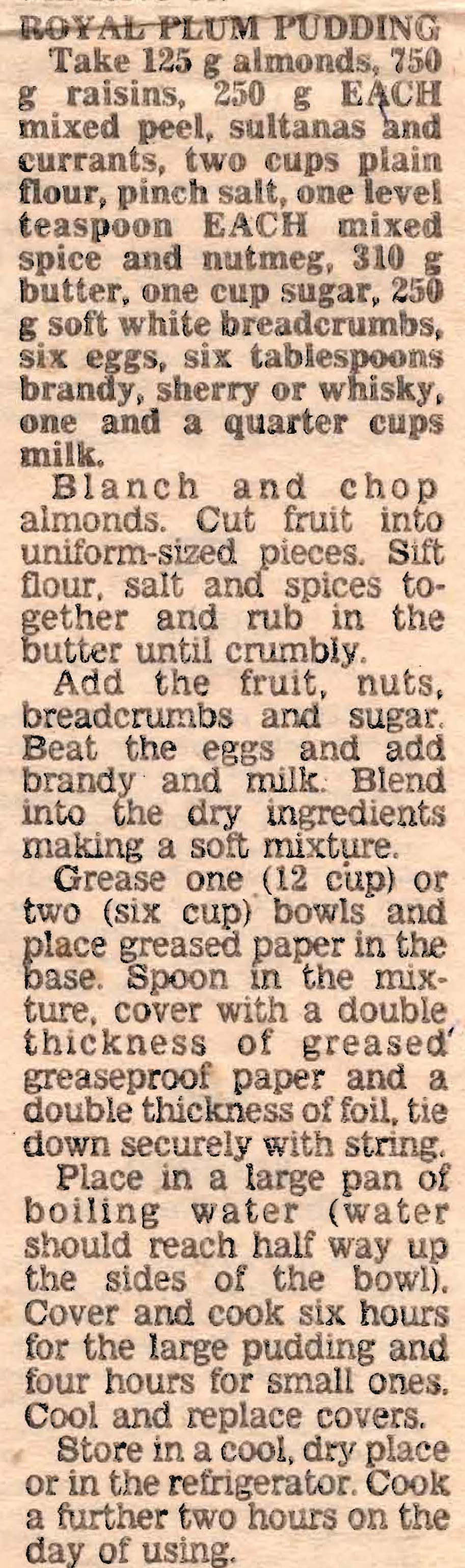 Christmas Mincemeat doesn’t have meat it and Plum Puddings don’t have plums in them – makes you wonder how these dishes got their names, doesn’t it. This year I’ve decided not to make a large Christmas Pudding I think I’ll make individual puddings instead. This old recipe uses sago, you can substitute tapioca if you need to.