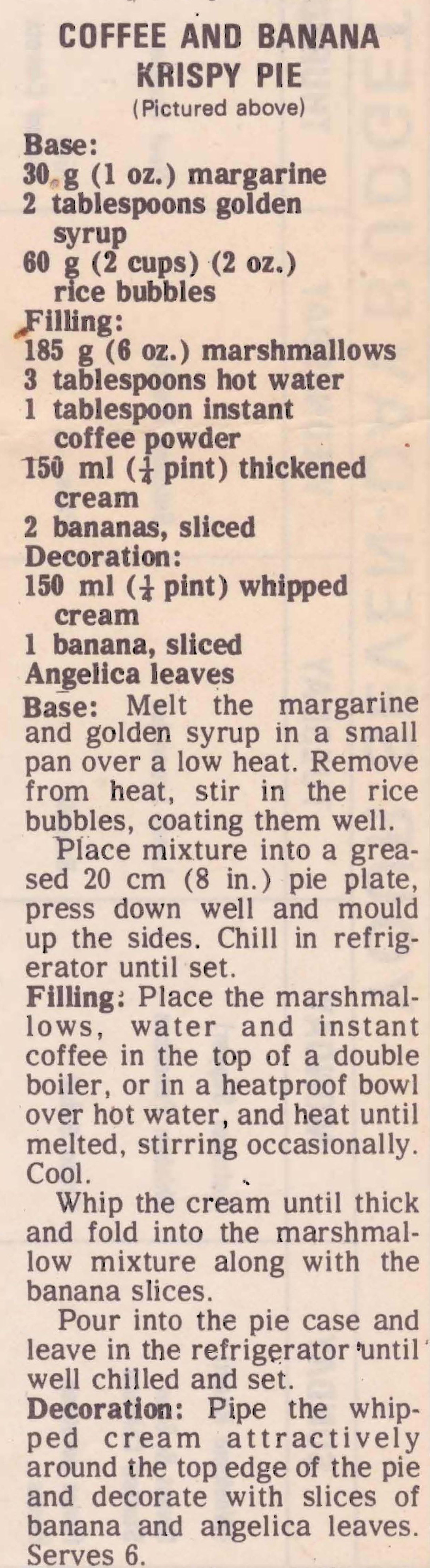COFFEE AND BANANA KRISPY PIE