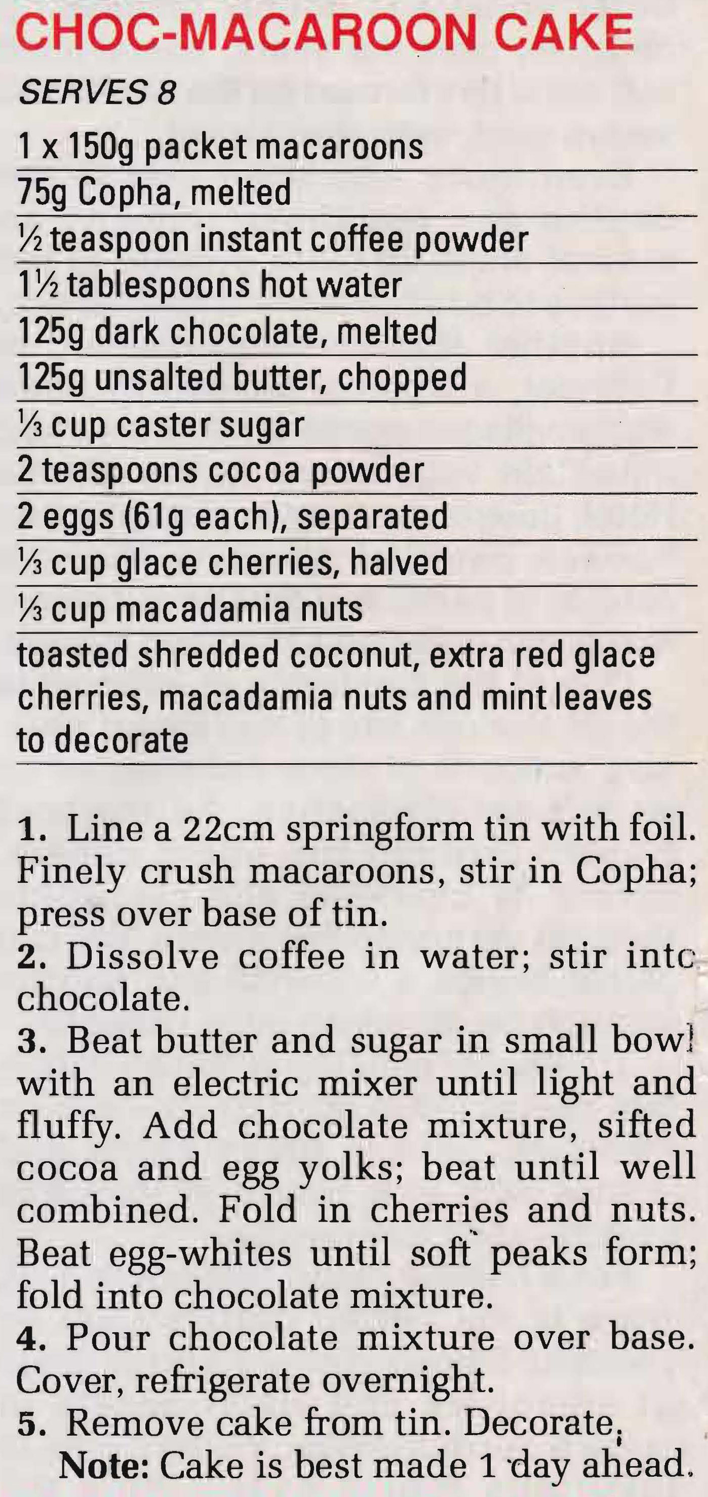 CHOC-MACAROON CAKE – NO BAKE