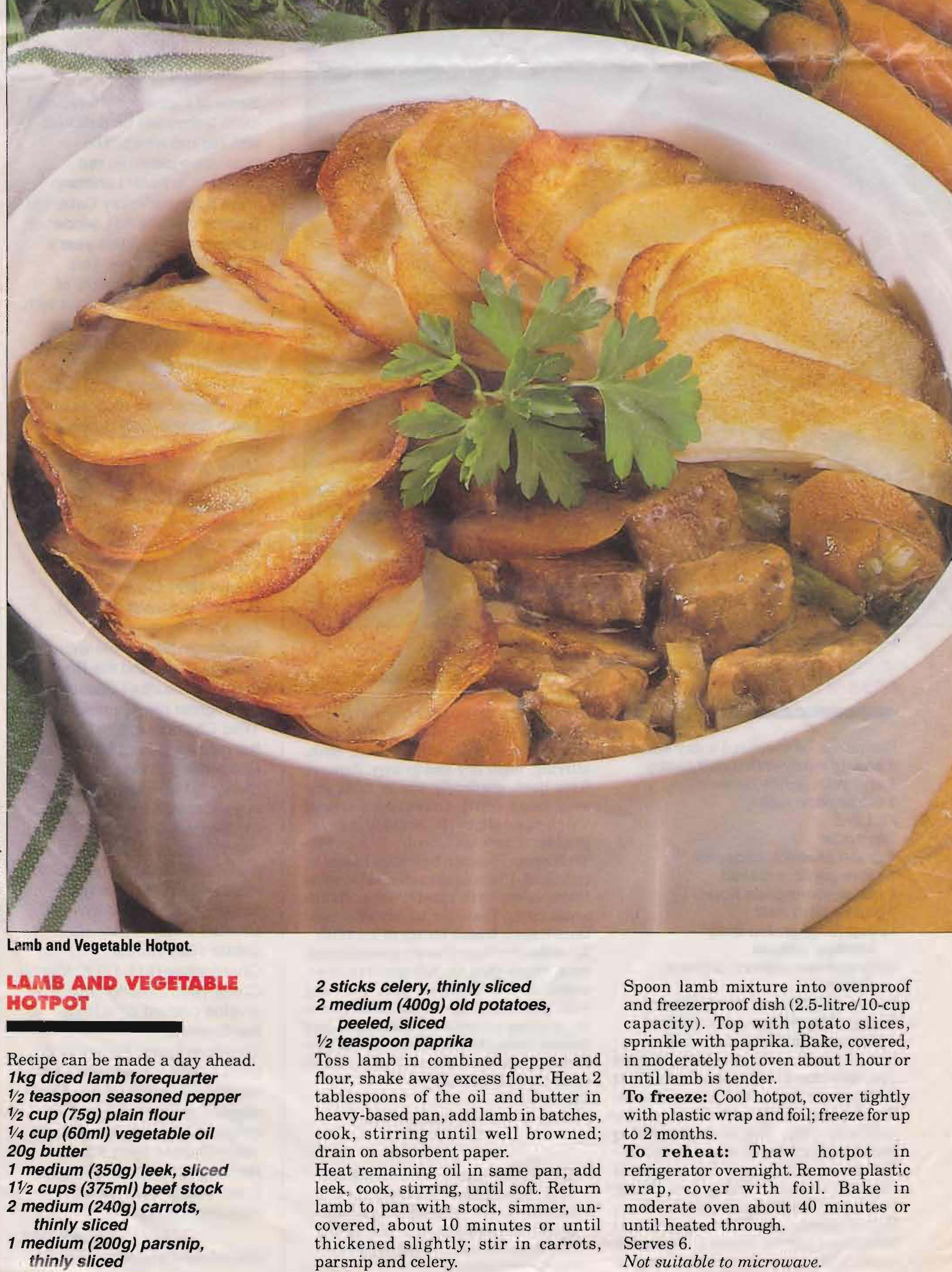 Lamb and vegetable casseroles have always been a staple dish in Australian households. From early on lamb was readily available and any vegetable could be added to bulk the dish out to feed a family. Originally it probably came to Australia as a Lancastershire Hot Pot, but whether you call it that or like this recipe Lamb & Vegetable Hot Pot it is always a hearty dish topped with potatoes.