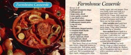 FARMHOUSE LAMB CASSEROLE Posted on July 13, 2019 by bebsrecipes Reply This recipe was on a sheet Mum picked up off the butcher’s counter back in the ’80s. She gave a copy to me and I’ve made it many times over the years. It’s a good basic lamb stew, a great family meal.