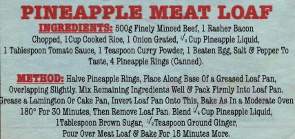 This is a quick and easy meatloaf with a glazed pineapple topping. Using tinned pineapple slices is quite outdated now, but they do have the advantage of being available all year, are always sweet and are a lot easier than cutting up a fresh pineapple.