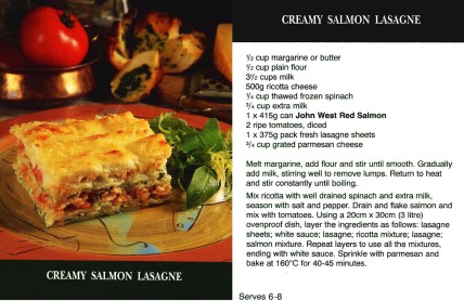 This is another John West salmon lasagne recipe. This version has lots of ricotta cheese in it which makes it lovely and creamy. Although it’s more expensive to use red salmon rather than pink it’s worth it, as it gives it lots more flavour. Great served with a salad and garlic bread.