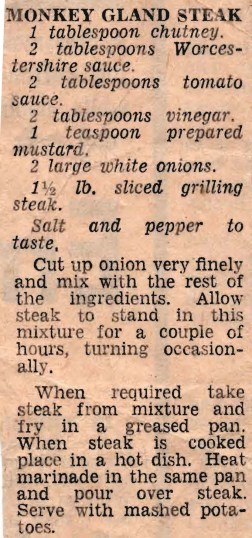 This old recipe bring back loads of memories as it’s the first dish I cooked a boyfriend back in the 60s when I flatted with a load of girls in Sydney. Despite the rather strange name and my limited cooking abilities, it actually tasted OK and he had the courage to marry me. His perseverance paid off though as, thankfully, I have improved both my recipe choices and abilities over the years.