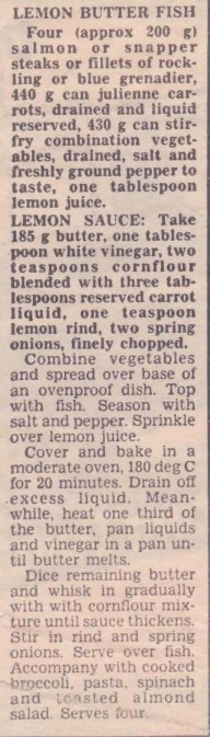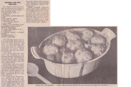 It’s a bit strange to see this 70s recipe using tinned carrots and tinned stir fry vegetables. The article says ‘hearty meals – don’t have to mean hours of work”, but I think using apacket of prepared fresh vegetables, that are available now in the supermarket, would be a lot tastier and just as easy.